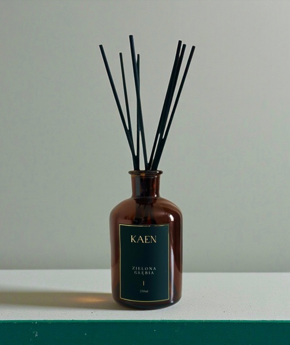 Dyfuzor zapachowy Zielona Głębia wypełni przestrzeń świeżym, zielonym aromatem inspirowanym naturą - zapachem czystego powietrza, lasu i spokoju.
